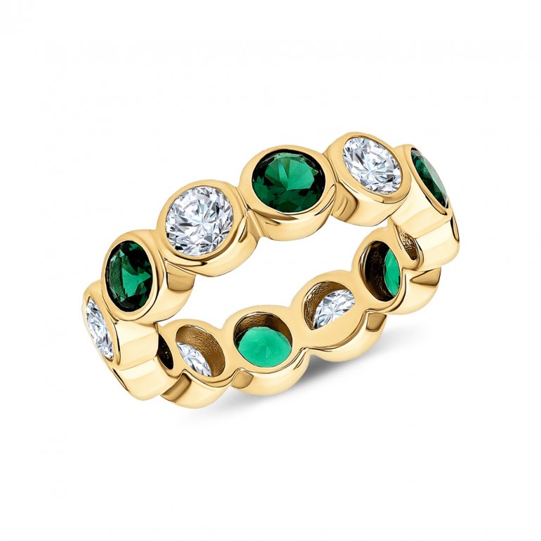 Кольцо, вставка: фианит зеленый;  фианитом бесцветным; Серебро 925 пробы.