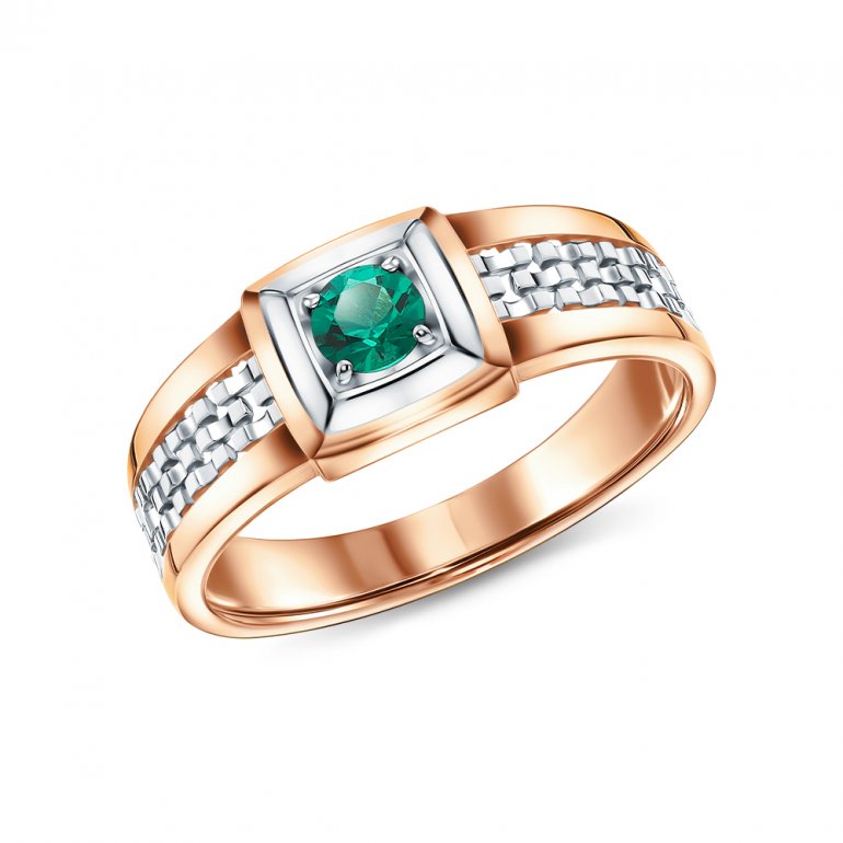 Кольцо с 1 гидротермальным изумрудом, 0.226 карат, тип огранки В; Розовое золото 585 пробы.