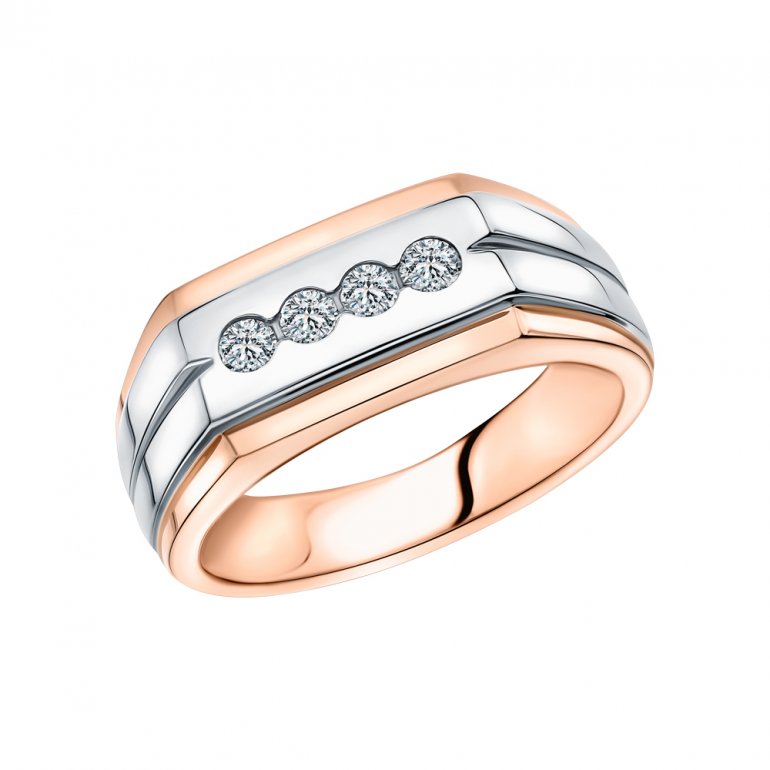 Кольцо с 4 бриллиантами природными, 0.225 карат, огранка круг 57 граней, цвет 4, чистота 6, тип огранки А; Розовое и белое золото 585 пробы.