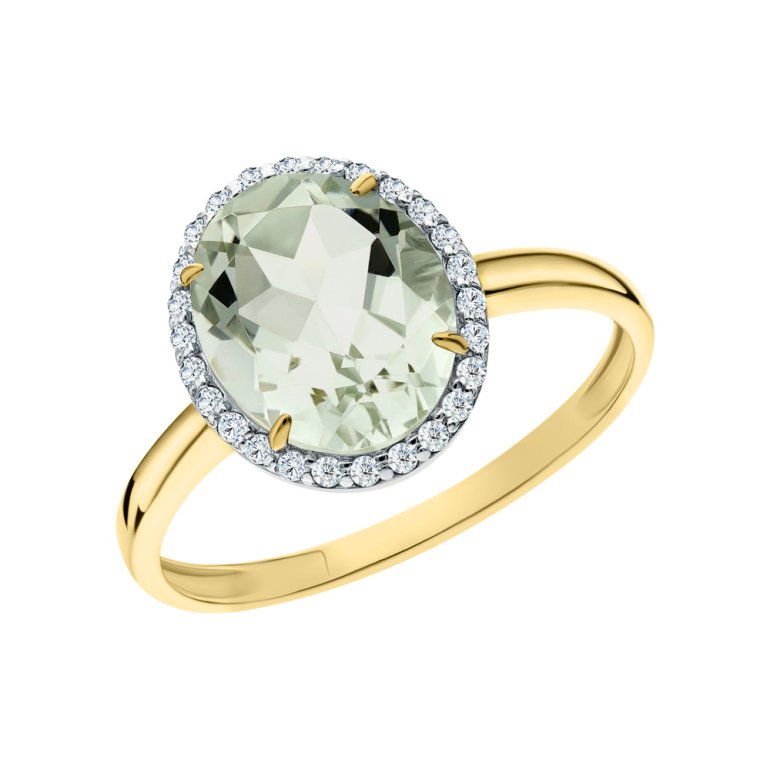 Кольцо с 1 празиолитом, 2.373 карат, тип огранки Б; фианит; Желтое золото 585 пробы.