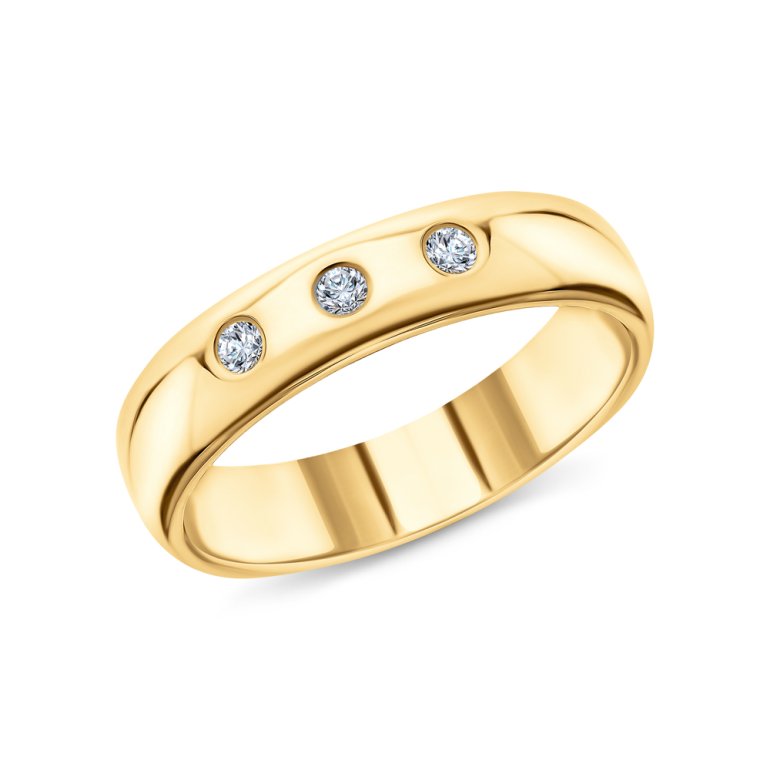 Кольцо с 3 бриллиантами, 0.088 карат, огранка круг 57 граней, цвет 3, чистота 6, тип огранки А; Желтое золото 585 пробы.