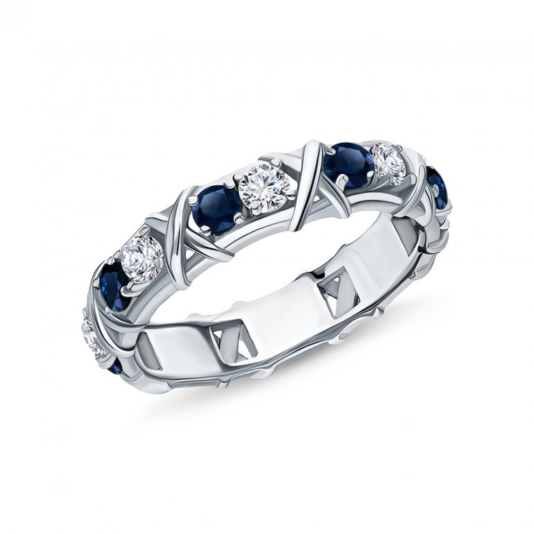 Серебряное кольцо с фианитами и сапфирами природными S42698-K9W-02 Кольца SUNLIGHT | V4.Ru: Маркетплейс