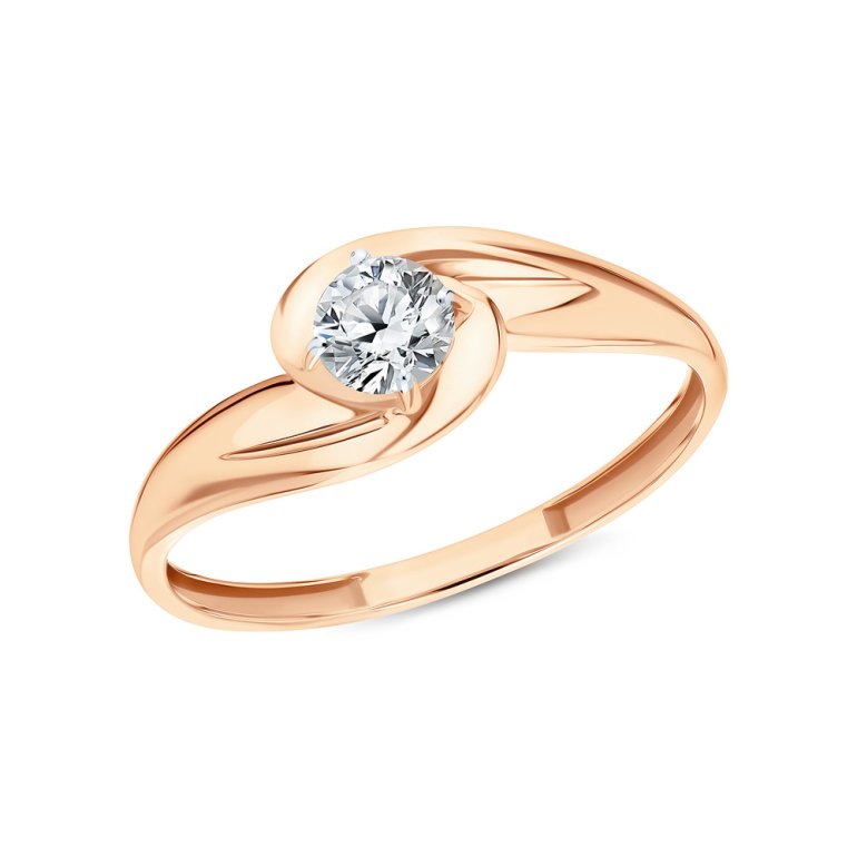 Кольцо, вставка: фианит бесцветный; Розовое золото 585 пробы.