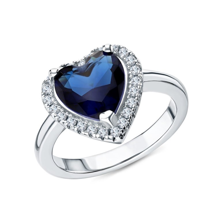 Кольцо, вставка: фианитом бесцветным;  алпанит синий; Серебро 925 пробы.