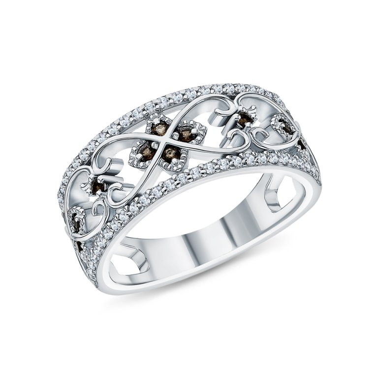 Серебряное кольцо с фианитами и кварцами дымчатыми природными S42877-K9W-01 Кольца SUNLIGHT | V4.Ru: Маркетплейс