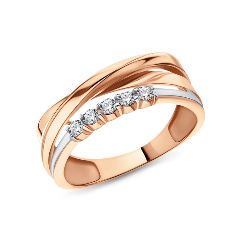 Кольцо, вставка: фианит бесцветный; Розовое золото 585 пробы.