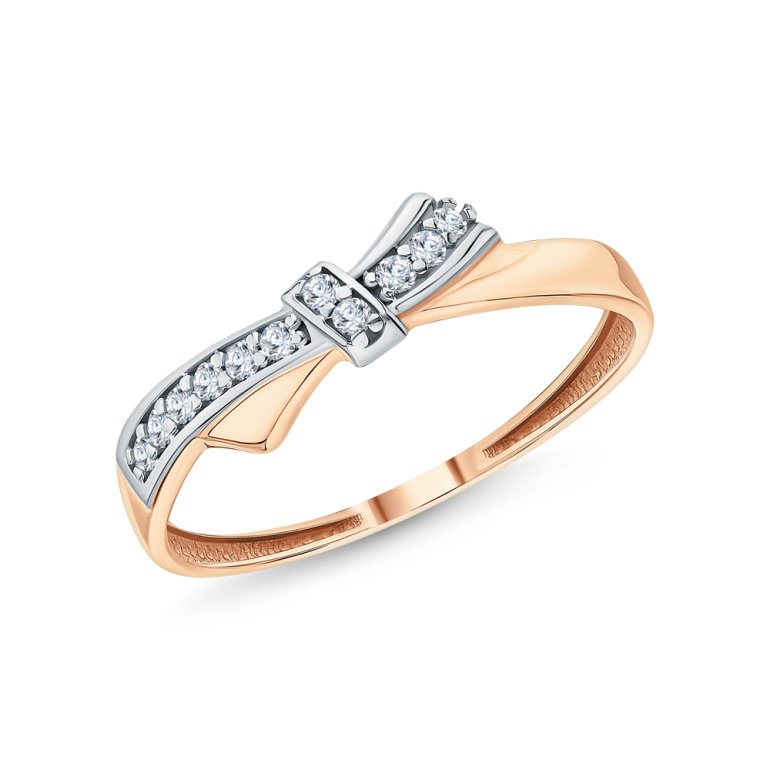 Кольцо, вставка: фианитом бесцветным; Розовое и белое золото 585 пробы.