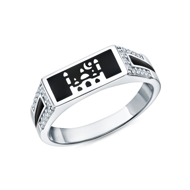 Кольцо, вставка: фианитом бесцветным;  эмаль черная; Серебро 925 пробы.