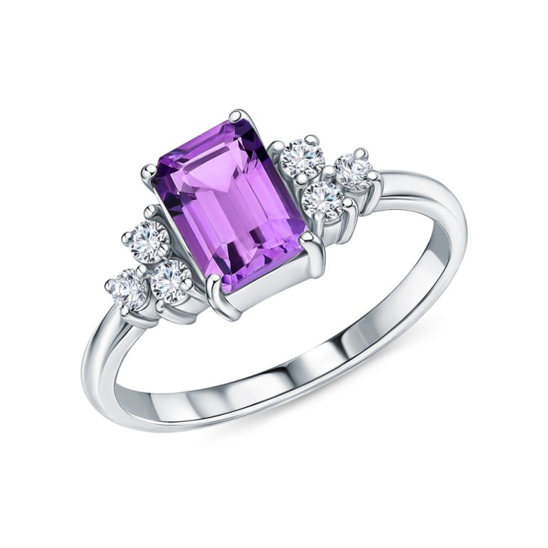 Кольцо с 1 аметистом природным, 0.93 карат; 6 топазами бесцветными природными, 0.24 карат; Серебро 925 пробы.