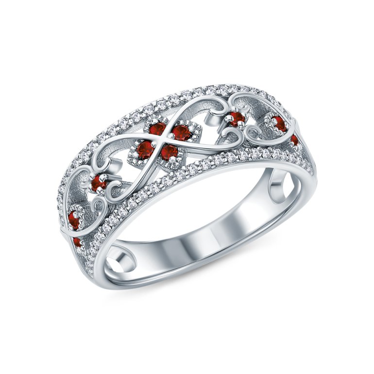 Серебряное кольцо с фианитами и гранатами природными S42855-K9W-01 Кольца SUNLIGHT | V4.Ru: Маркетплейс