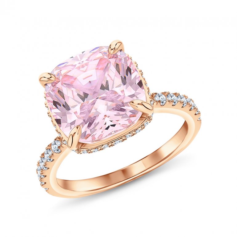 Кольцо, вставка: фианит розовый;  фианитом бесцветным; Серебро 925 пробы.