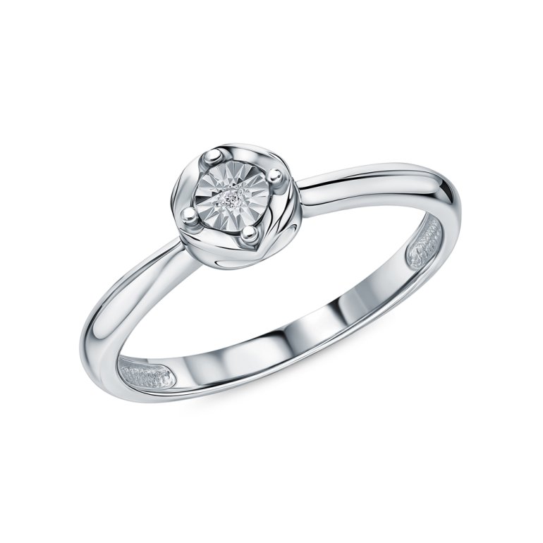 Кольцо с 1 бриллиантом природным, 0.004 карат, огранка круг 17 граней, цвет 2, чистота 3, тип огранки Б; Серебро 925 пробы.