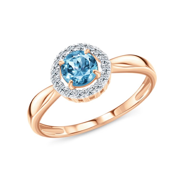 Кольцо с 1 топазом свисс природным, 0.532 карат, тип огранки В; 16 бриллиантами, 0.103 карат, огранка круг 17 граней, цвет 2, чистота 2, тип огранки А; Розовое золото 585 пробы.