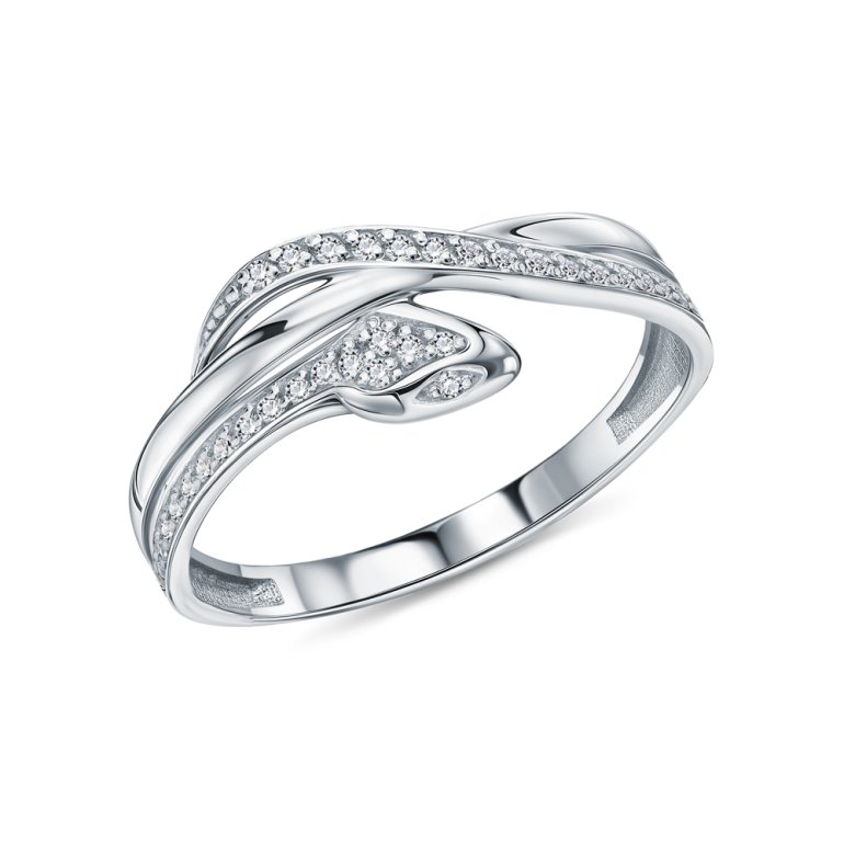 Кольцо, вставка: фианитом бесцветным; Серебро 925 пробы.