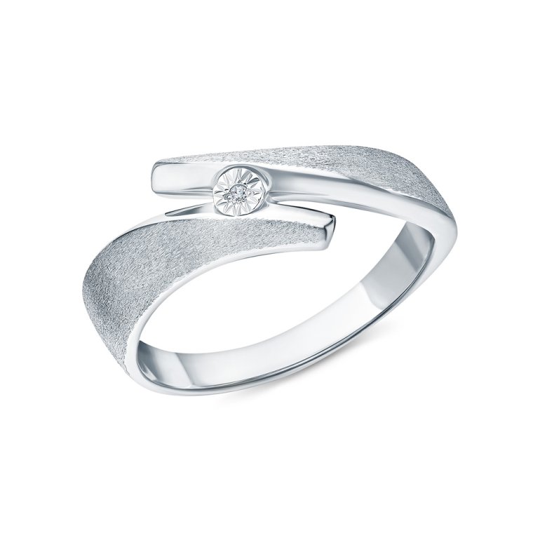 Кольцо с 1 бриллиантом природным, 0.004 карат, огранка круг 17 граней, цвет 2, чистота 3, тип огранки Б; Серебро 925 пробы.