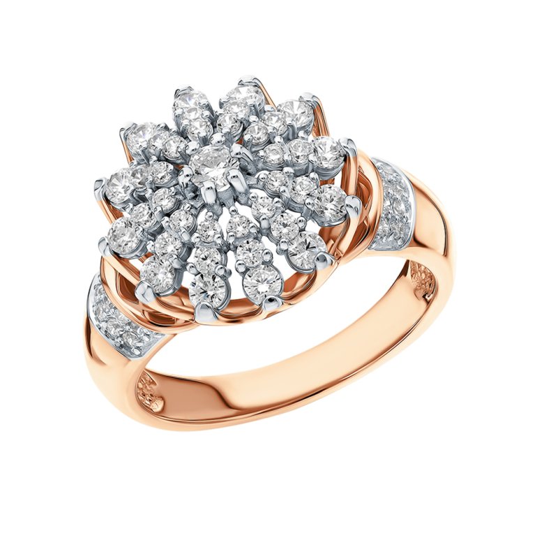 Кольцо, вставка: фианит; Розовое и белое золото 585 пробы.