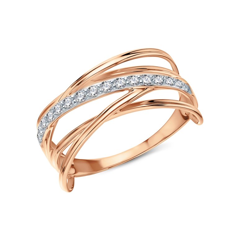 Кольцо, вставка: фианитом бесцветным; Розовое золото 585 пробы.