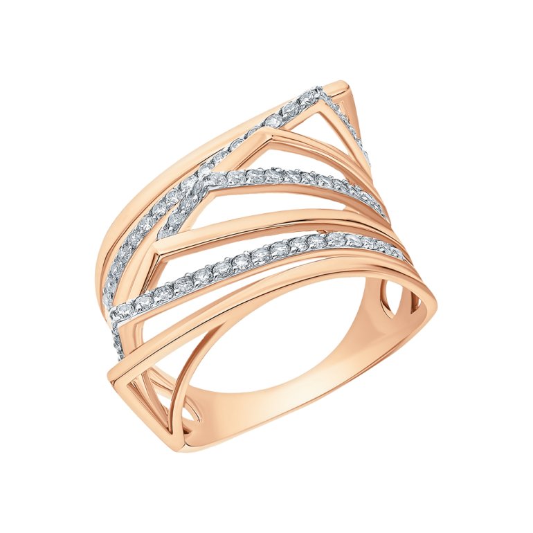 Кольцо, вставка: фианитом бесцветным; Розовое золото 585 пробы.