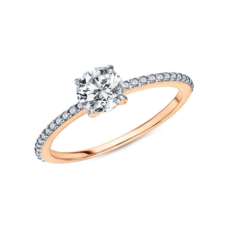 Кольцо, вставка: фианитом бесцветным; Розовое золото 585 пробы.
