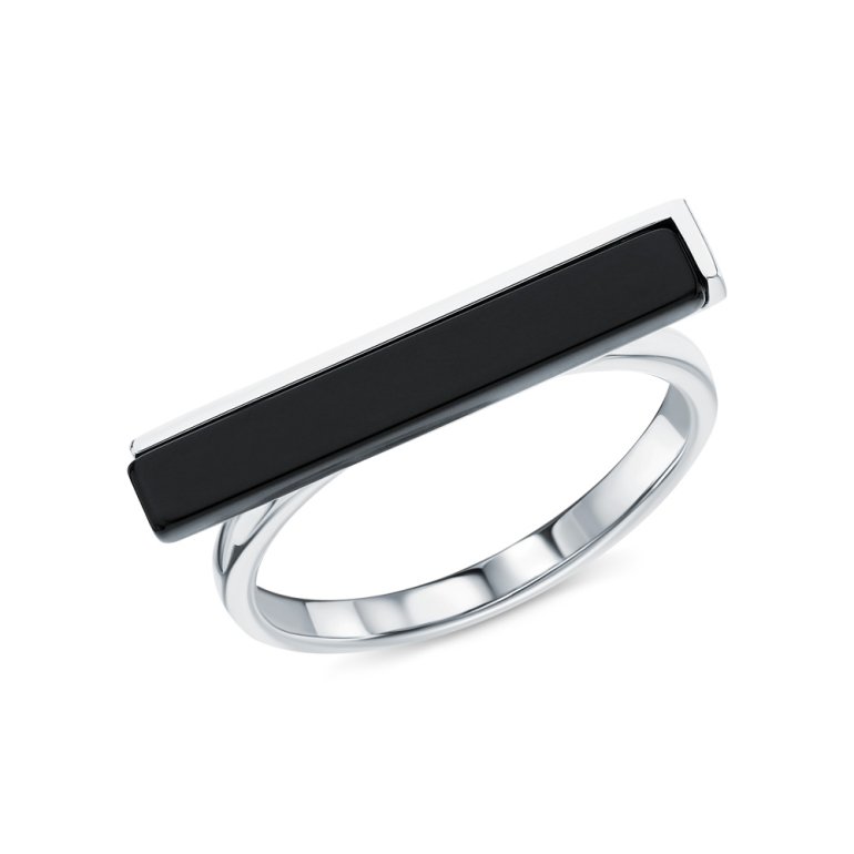 Кольцо с 1 агатом черным природным, огранка четырехлистник, тип огранки Б; Серебро 925 пробы.