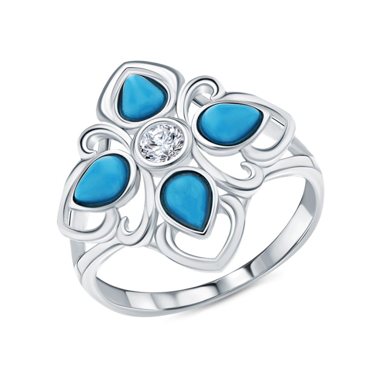 Серебряное кольцо с фианитами и бирюзой синтетической
