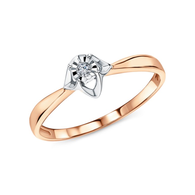 Кольцо с 1 бриллиантом, 0.02 карат, огранка круг 57 граней, цвет 3, чистота 6, тип огранки А; Розовое и белое золото 585 пробы.