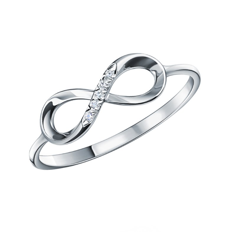 Кольцо с 5 бриллиантами, 0.009 карат, огранка круг 17 граней, цвет 2, чистота 2, тип огранки Б; Белое золото 585 пробы.