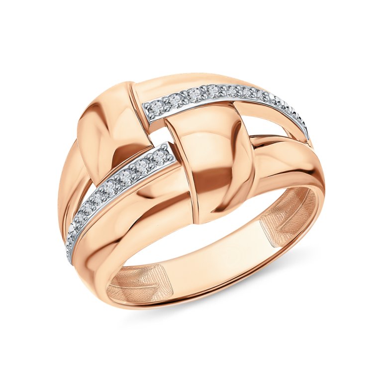 Кольцо, вставка: фианит бесцветный; Розовое золото 585 пробы.