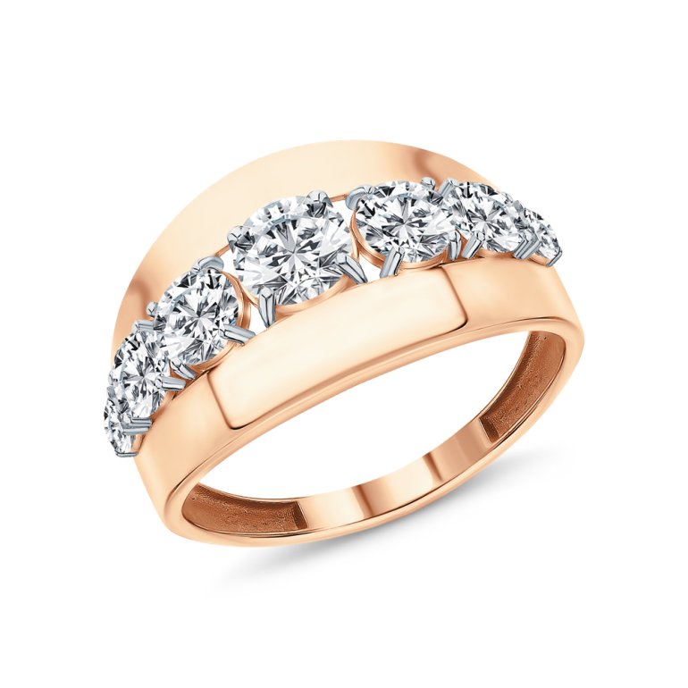 Кольцо, вставка: фианитом бесцветным; Розовое золото 585 пробы.