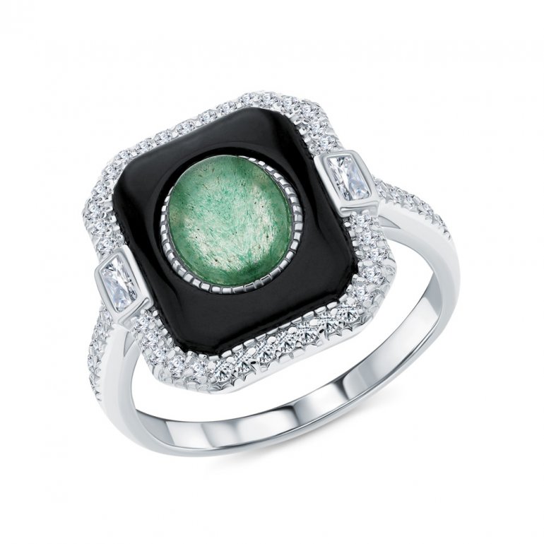 Серебряное кольцо с фианитами, авантюрином и агатами природными S42962-K9W-01 Кольца SUNLIGHT | V4.Ru: Маркетплейс
