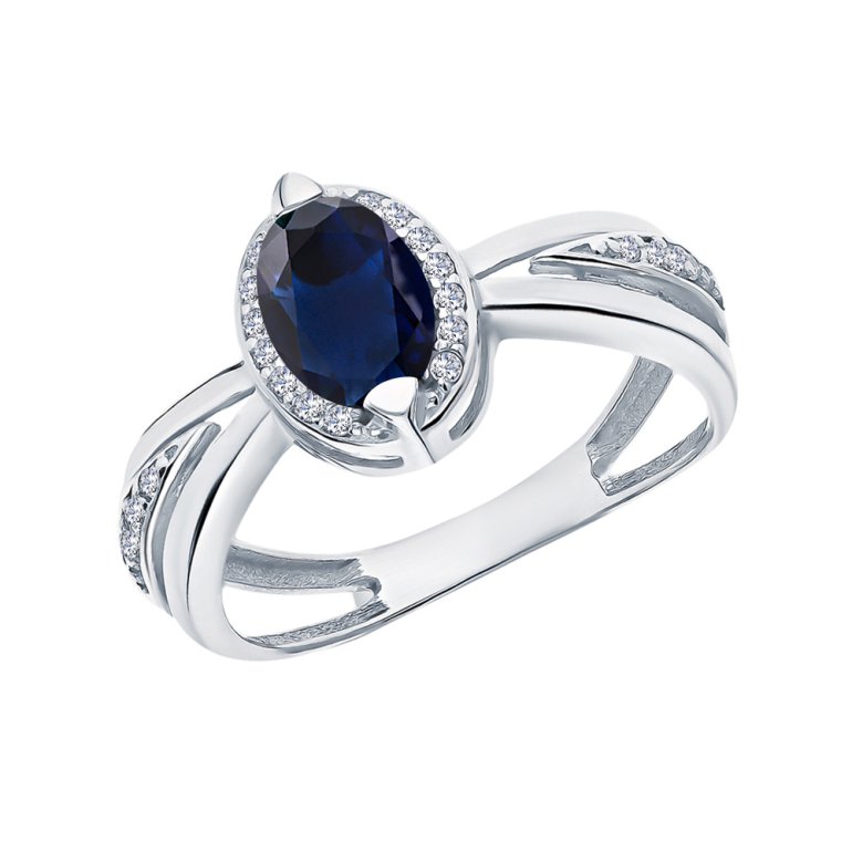 Кольцо, вставка: фианит;  ситалл синий; Серебро 925 пробы.