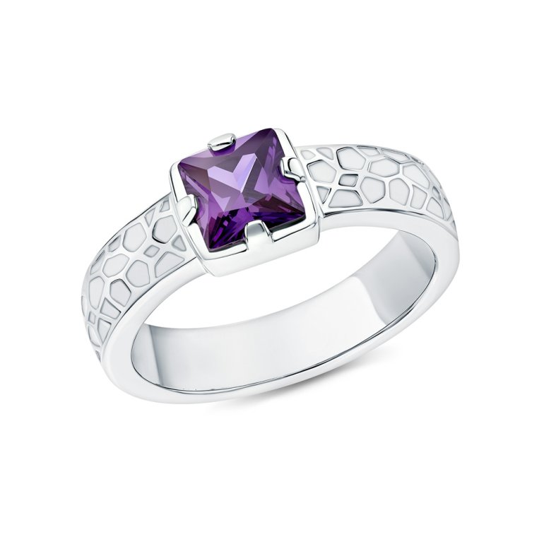 Кольцо, вставка: эмаль белая;  фианит фиолетовый; Серебро 925 пробы.