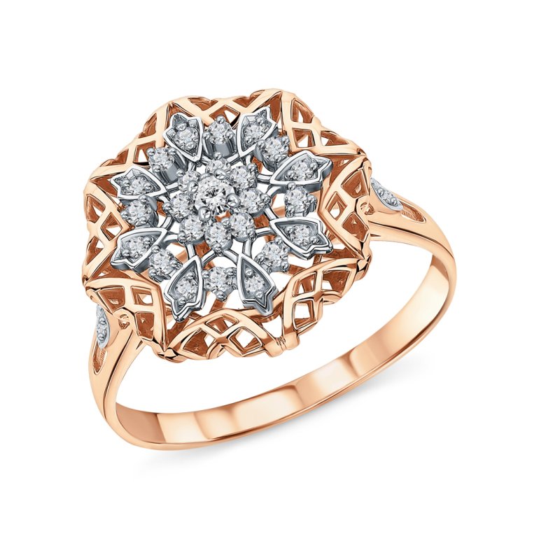 Кольцо, вставка: фианит бесцветный; Розовое и белое золото 585 пробы.