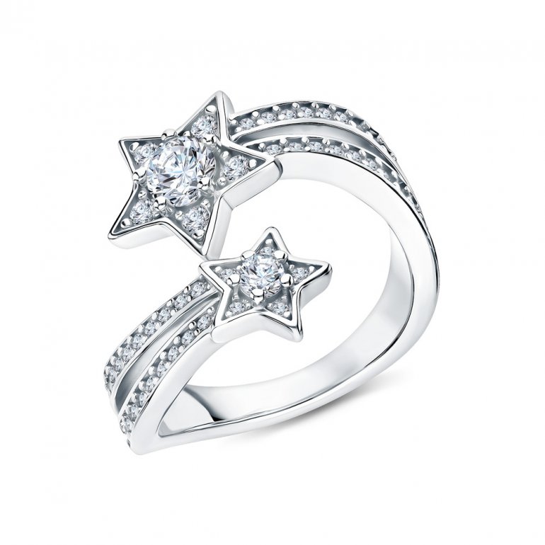 Кольцо, вставка: фианитом бесцветным; Серебро 925 пробы.