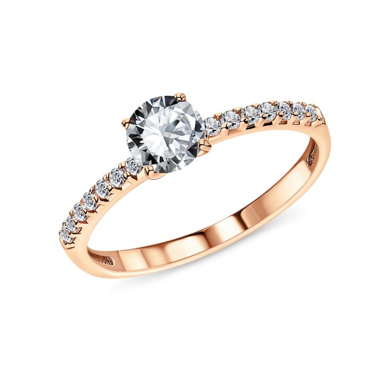 Кольцо, вставка: фианитом бесцветным; Розовое золото 585 пробы.