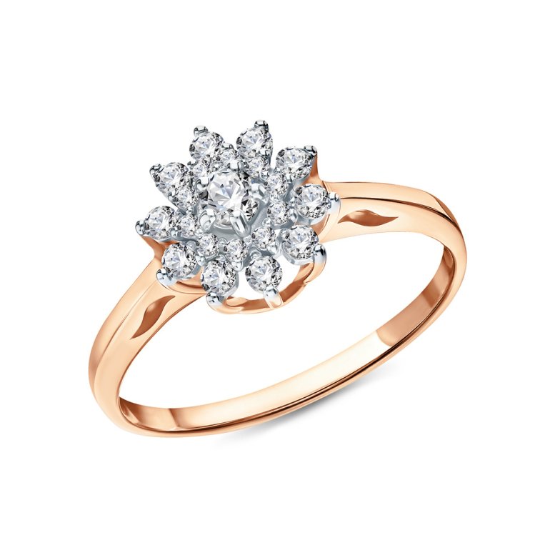 Кольцо, вставка: фианитом бесцветным; Розовое золото 585 пробы.