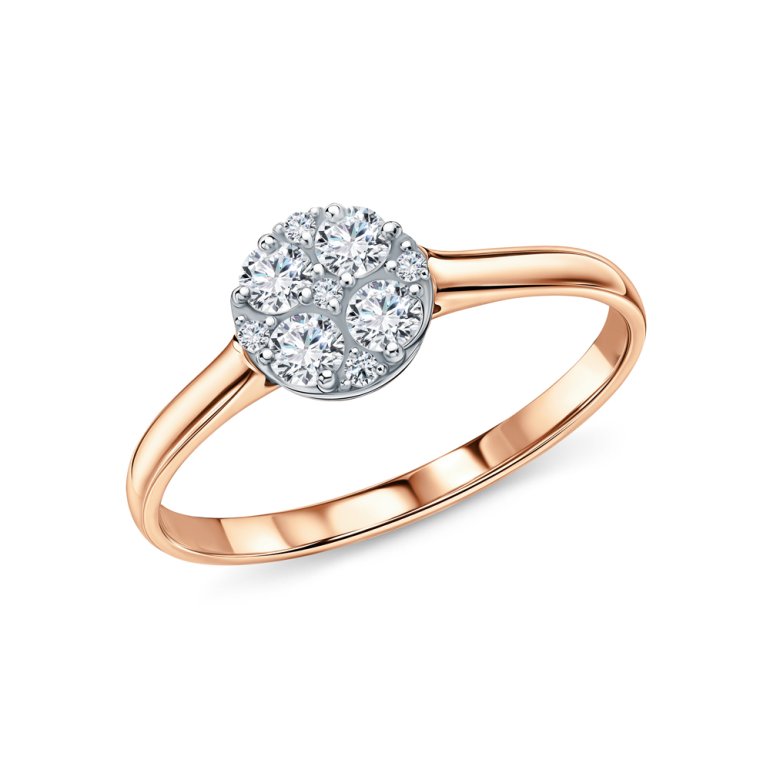 Кольцо с 4 бриллиантами выращенными, 0.359 карат, огранка круг 57 граней, цвет 3, чистота 6, тип огранки А; 4 бриллиантами выращенными, 0.051 карат, огранка круг 57 граней, цвет 3, чистота 6, тип огранки А; 1 бриллиантом выращенным, 0.01 карат, огранка круг 57 граней, цвет 3, чистота 6, тип огранки А; Розовое золото 585 пробы.