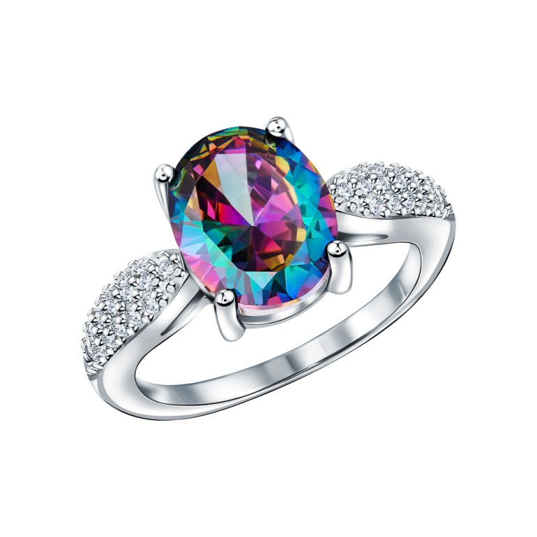 Кольцо, вставка: фианит мистик;  фианитом бесцветным; Серебро 925 пробы.
