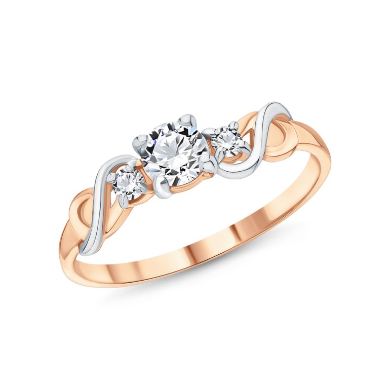 Кольцо, вставка: фианитом бесцветным; Розовое золото 585 пробы.