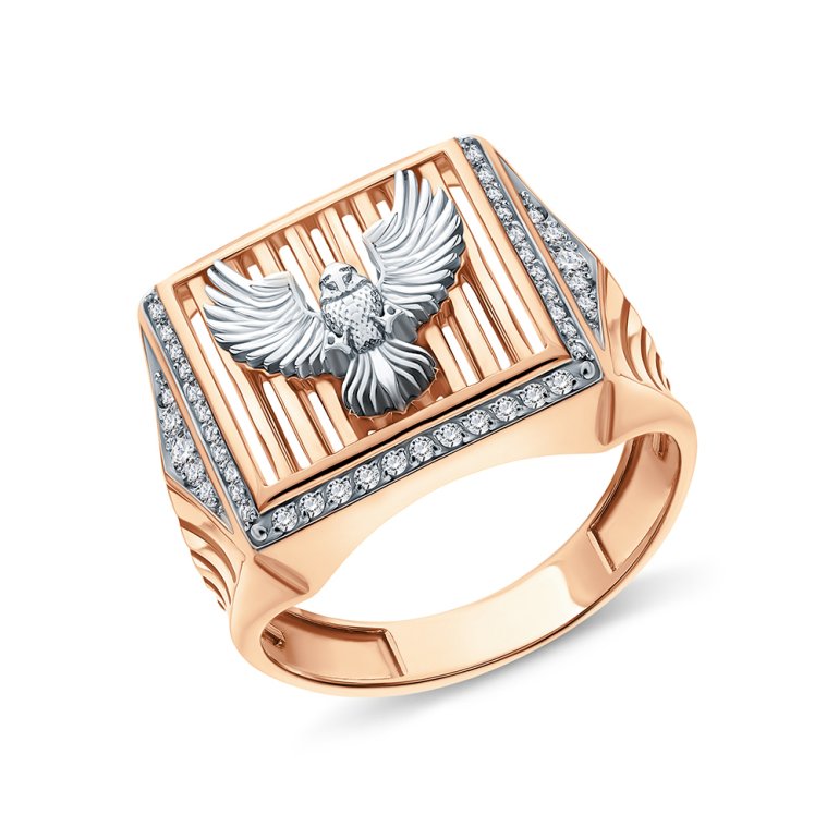 Кольцо, вставка: фианитом бесцветным; Розовое и белое золото 585 пробы.