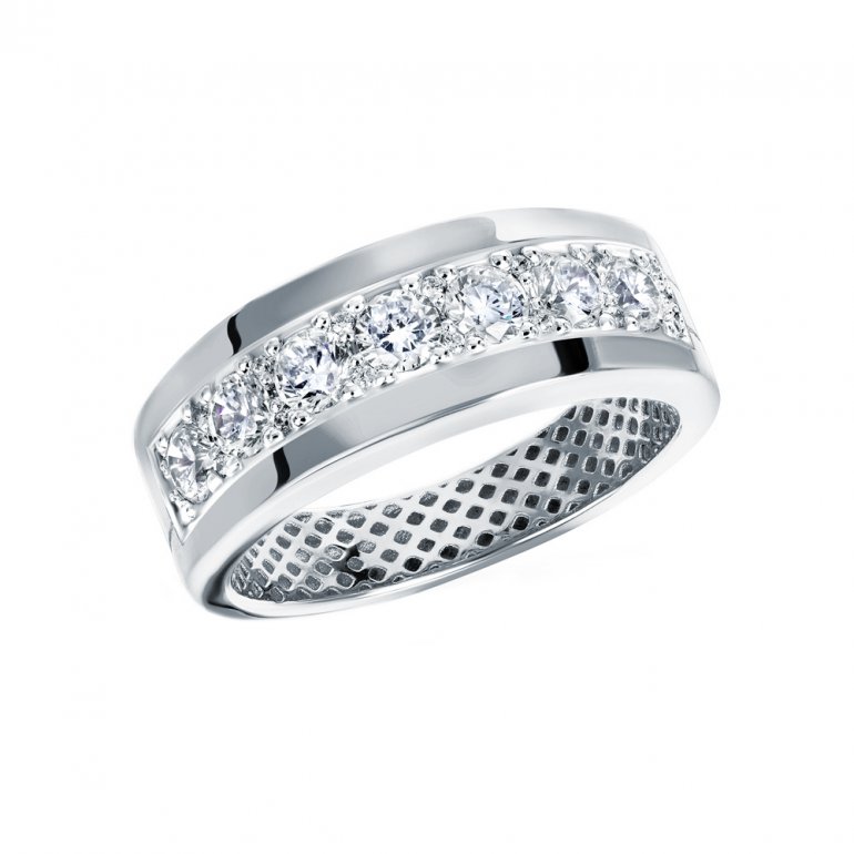 Кольцо, вставка: фианитом бесцветным; Белое золото 585 пробы.