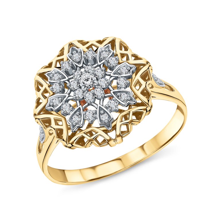 Кольцо, вставка: фианит бесцветный; Желтое и белое золото 585 пробы.