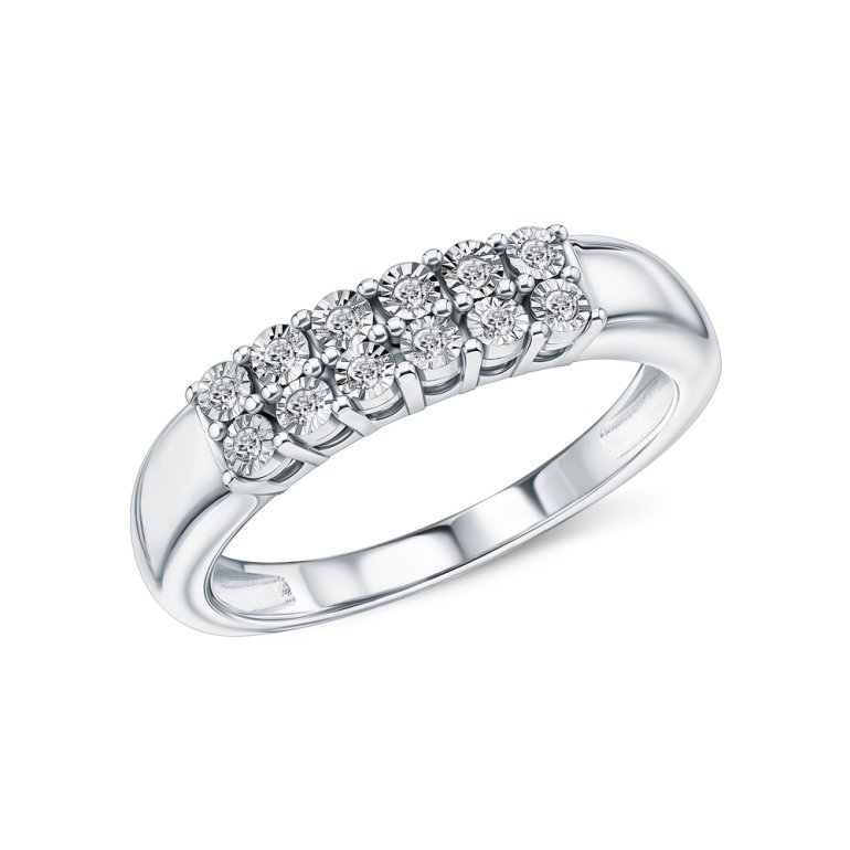 Кольцо с 12 бриллиантами природными, 0.06 карат, огранка круг 17 граней, цвет 2, чистота 2, тип огранки А; Белое золото 585 пробы.