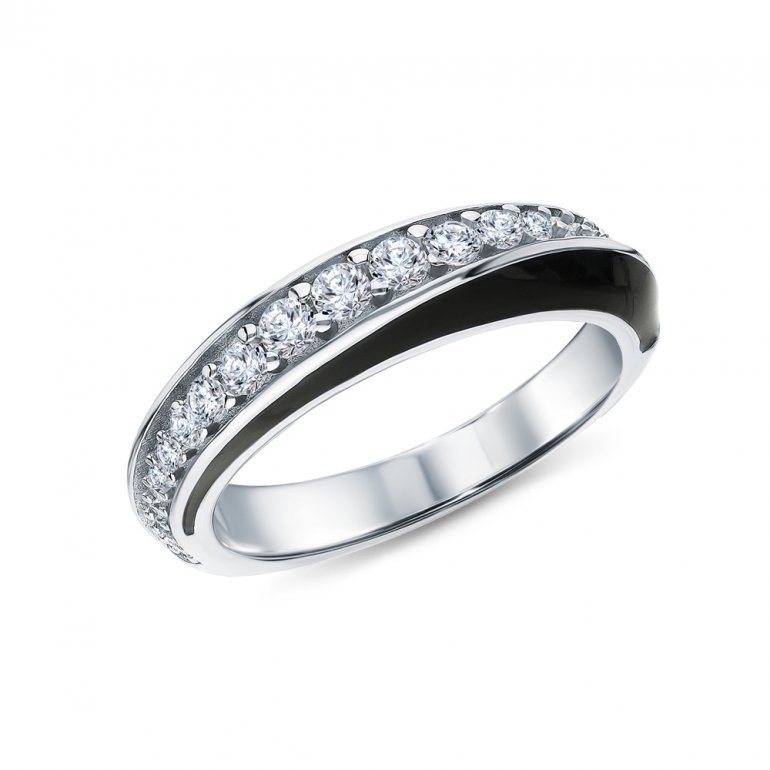 Кольцо, вставка: эмаль черная;  фианитом бесцветным; Серебро 925 пробы.