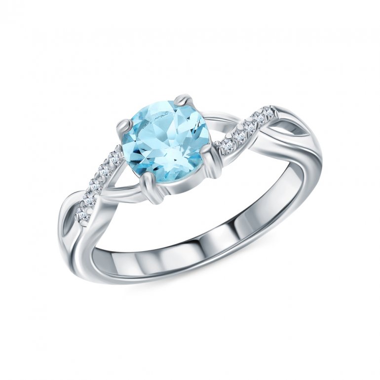 Кольцо, вставка: топаз скай природный;  фианитом бесцветным; Серебро 925 пробы.