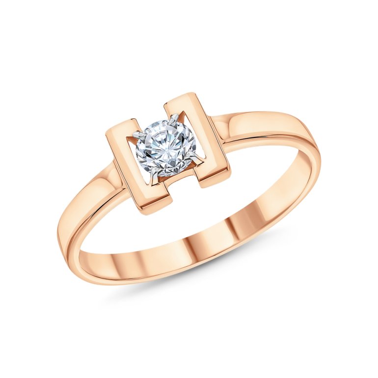Кольцо, вставка: фианитом бесцветным; Розовое золото 585 пробы.