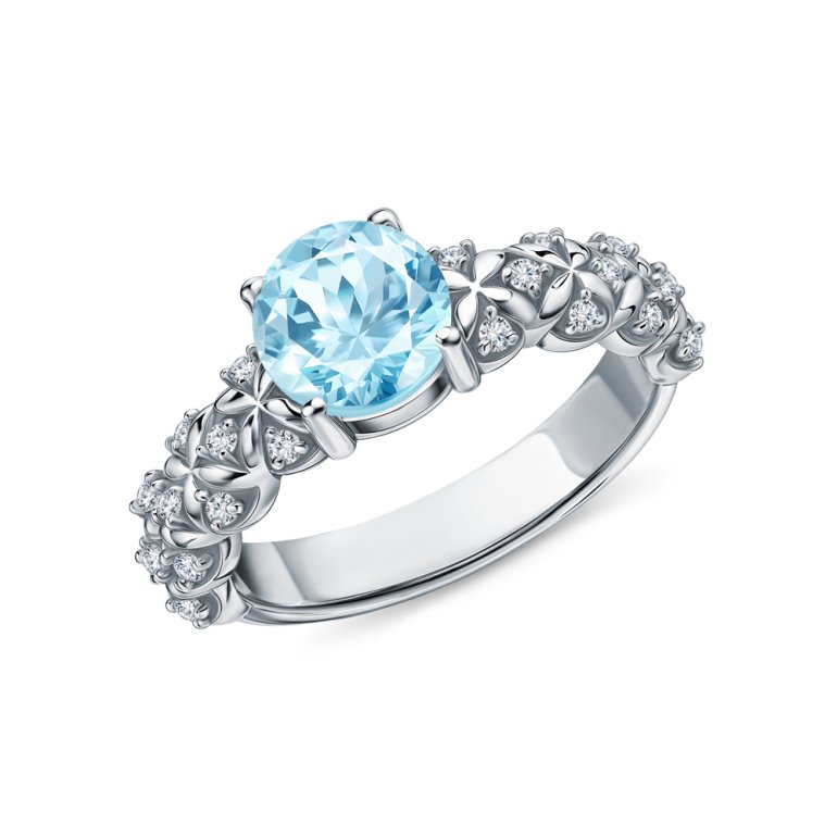 Серебряное кольцо с фианитами и топазами природными S43343-K9W-02 Кольца SUNLIGHT | V4.Ru: Маркетплейс