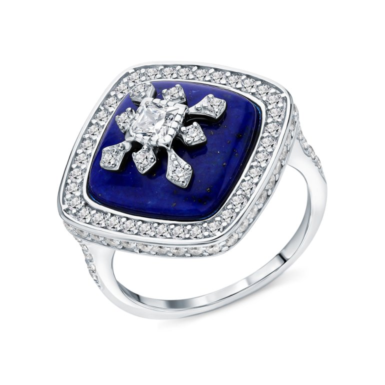 Серебряное кольцо с лазуритом и фианитами S56592-K9W-01 Кольца SUNLIGHT | V4.Ru: Маркетплейс