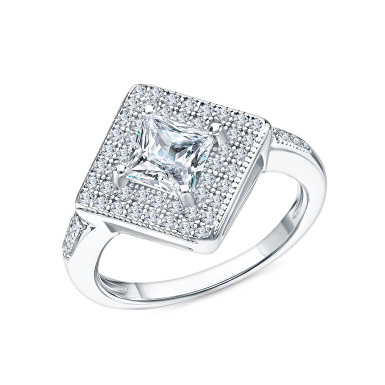 Кольцо, вставка: фианитом бесцветным; Серебро 925 пробы.