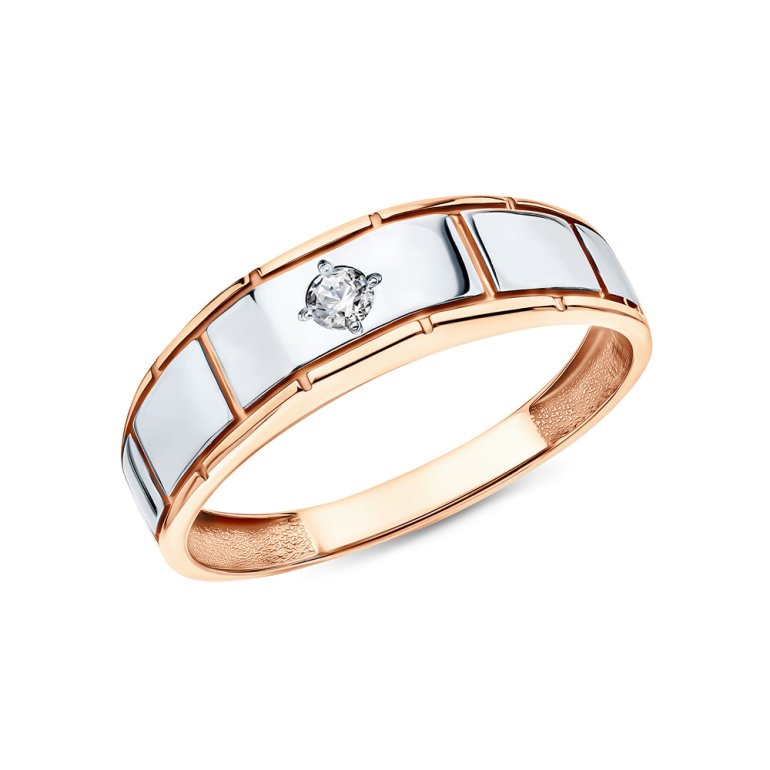 Кольцо с 1 фианитом бесцветным, 0.203 карат, тип огранки Б; Розовое золото 375 пробы.